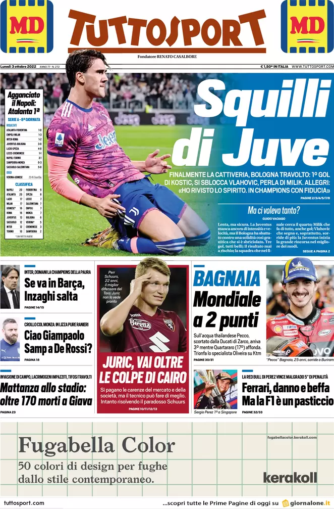 Le prime pagine dei principali quotidiani sportivi nazionali questa mattina in edicola