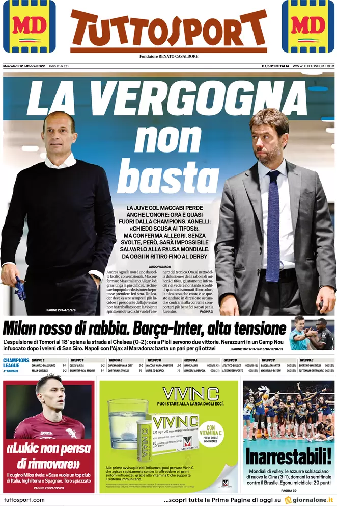 Le prime pagine dei quotidiani sportivi nazionali in edicola questa mattina