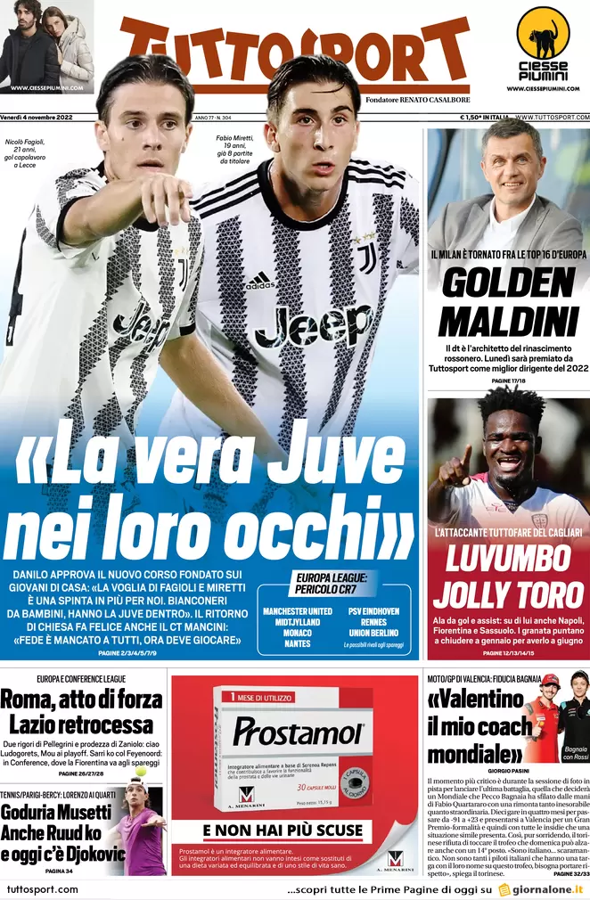 Le prime pagine dei principali quotidiani sportivi nazionali questa mattina in edicola