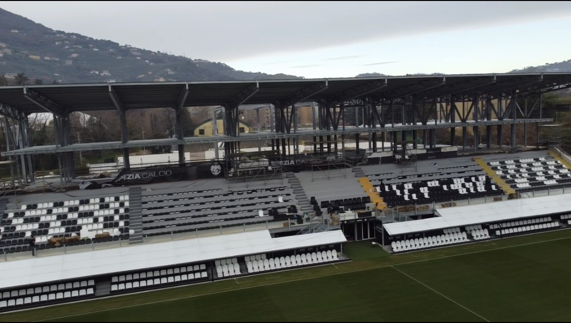 Avanzano a ritmo serrato i lavori alla tribuna dello Stadio Alberto Picco di La Spezia. Nella giornata odierna è stata completata la copertura del Settore Tribuna. Il settore rimarrà comunque ancora chiuso per la partita con il Modena del prossimo 26 dicembre. Il Club di via Melara spera di poter riaprirlo per il prossimo impegno casalingo quando il 20 gennaio 2024 arriverà la Cremonese a far visita alle Aquile.