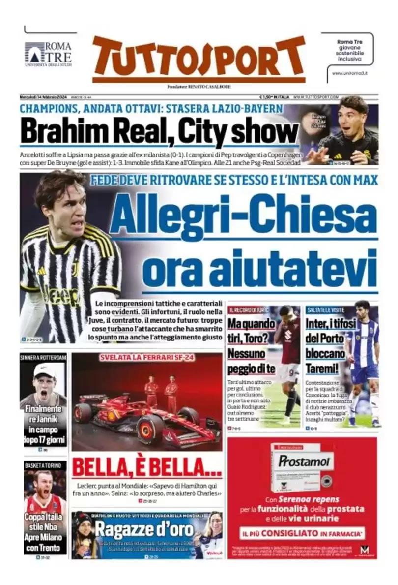 Le prime pagine dei principali quotidiani sportivi nazionali questo mercoledì mattina in edicola