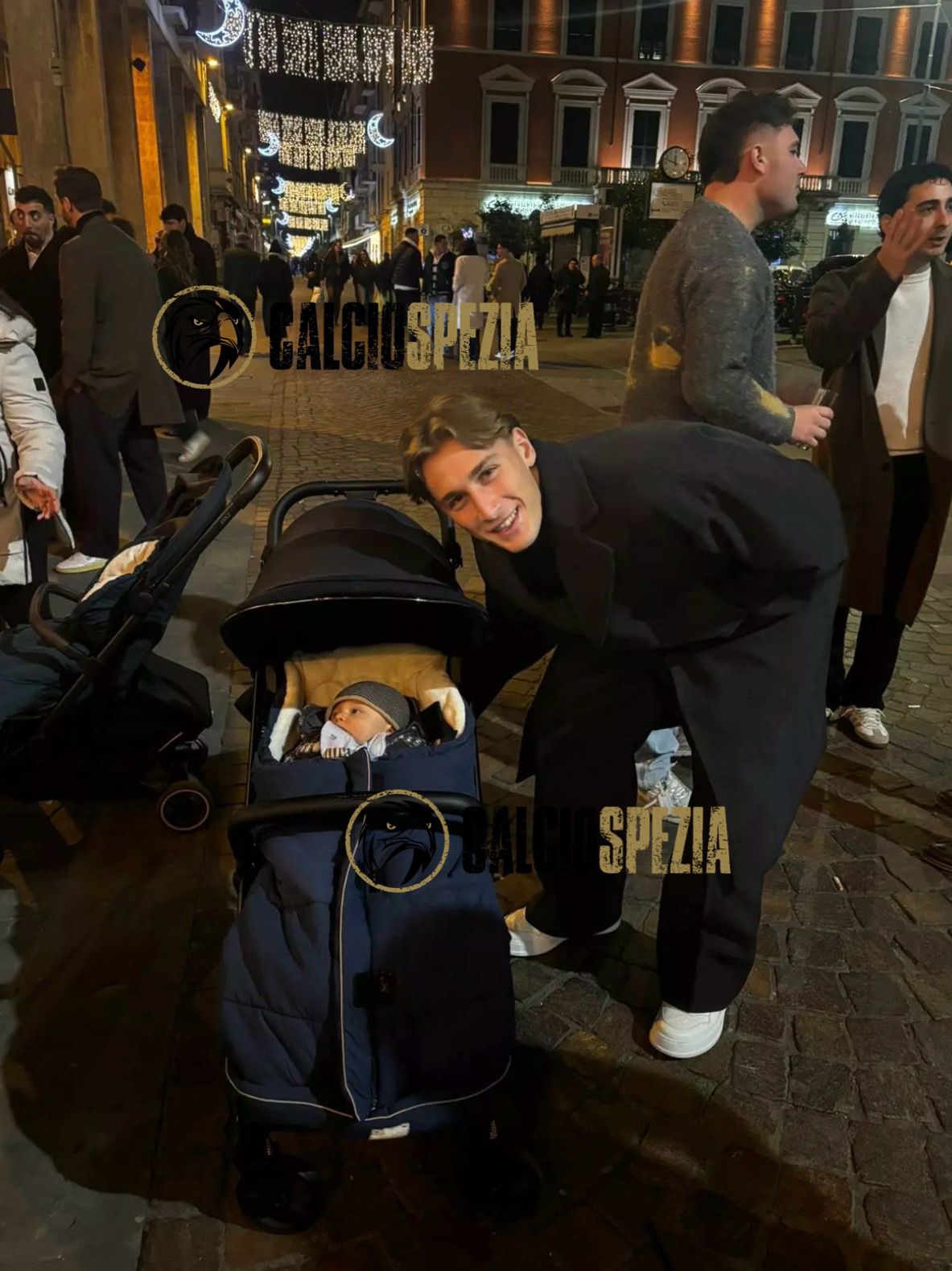 La presenza di Esposito tra le vie cittadine per salutare l’arrivo del nuovo anno non è passata inosservata. La Redazione di CalcioSpezia lo ha incontrato presso il “Bar Centrale”, dove, con naturalezza e disponibilità, è nato uno scatto simbolico insieme a un giovanissimo tifoso aquilotto. Un momento semplice ma significativo, che racconta continuità, identità e un filo diretto tra chi ha indossato con orgoglio la gloriosa maglia bianca e chi sognerà, un giorno, di difenderne i colori.