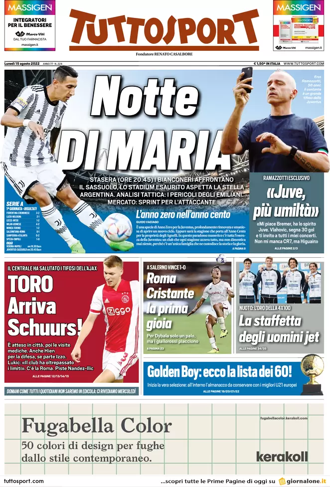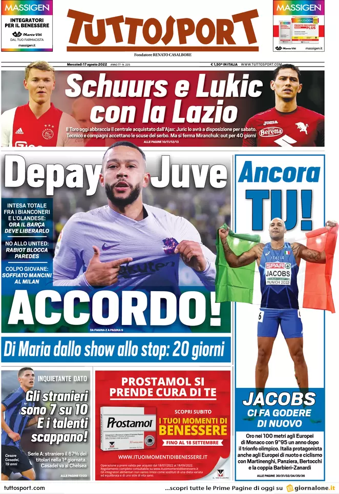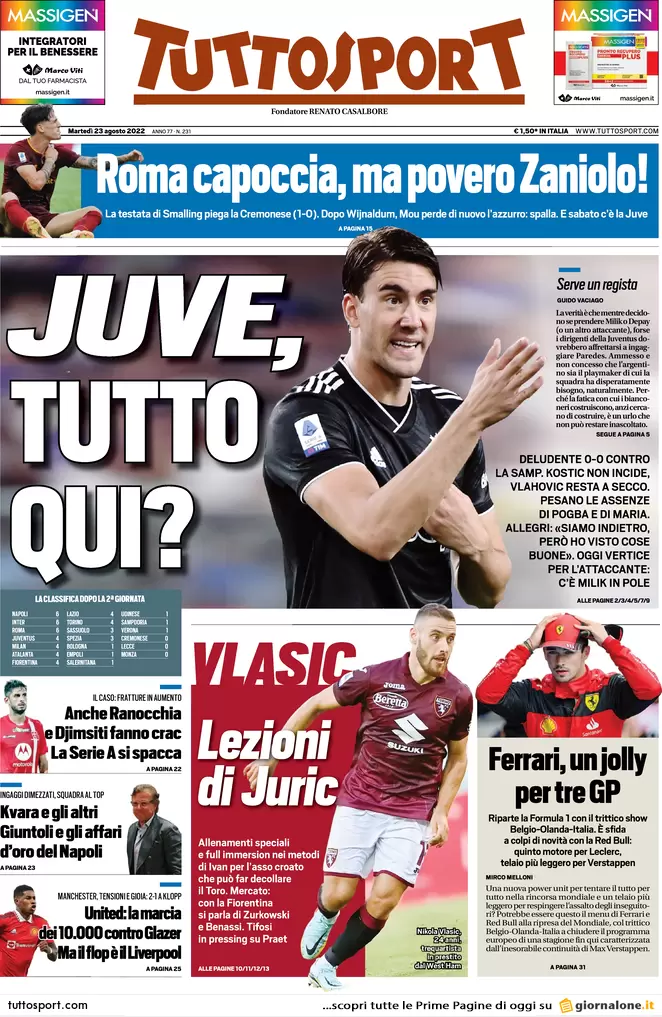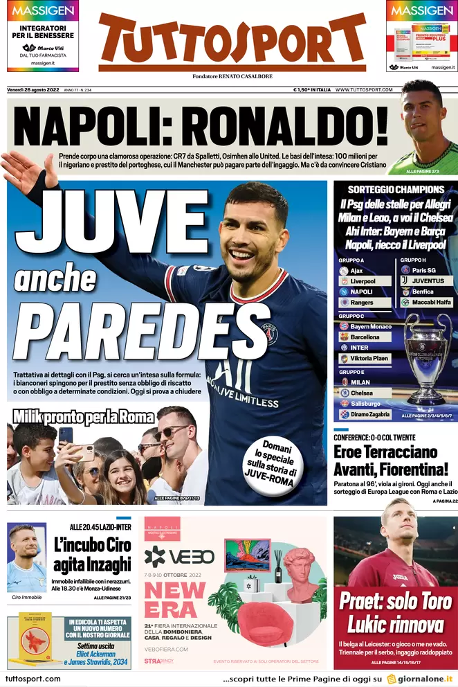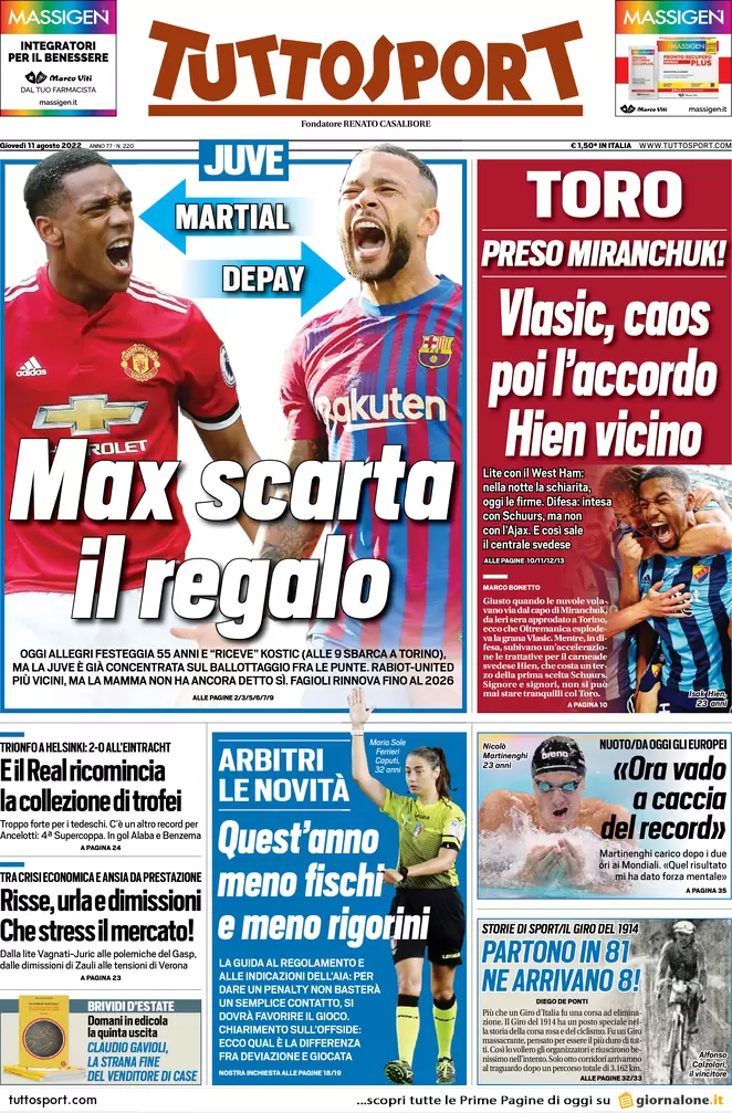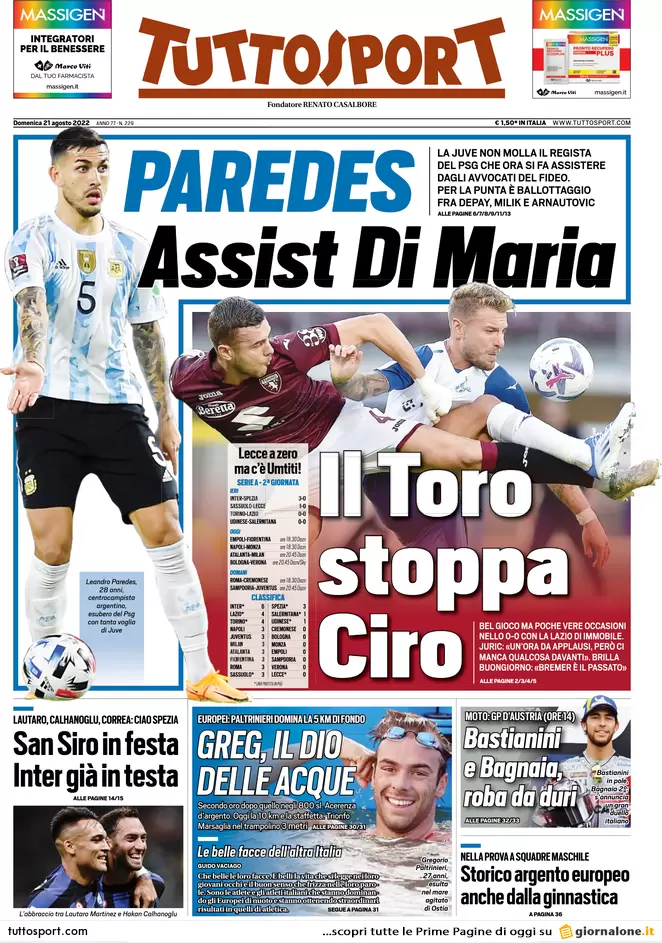 Le prime pagine dei principali quotidiani sportivi nazionali in edicola questa mattina.